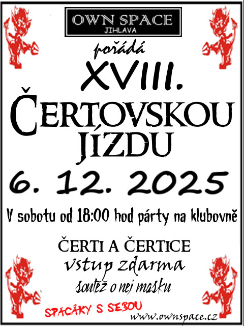 Nejbližší akce: 6.12. 2025 – Čertovská jízda